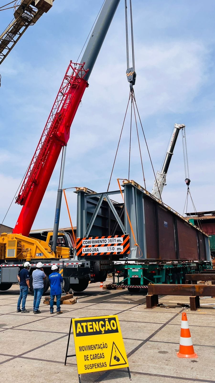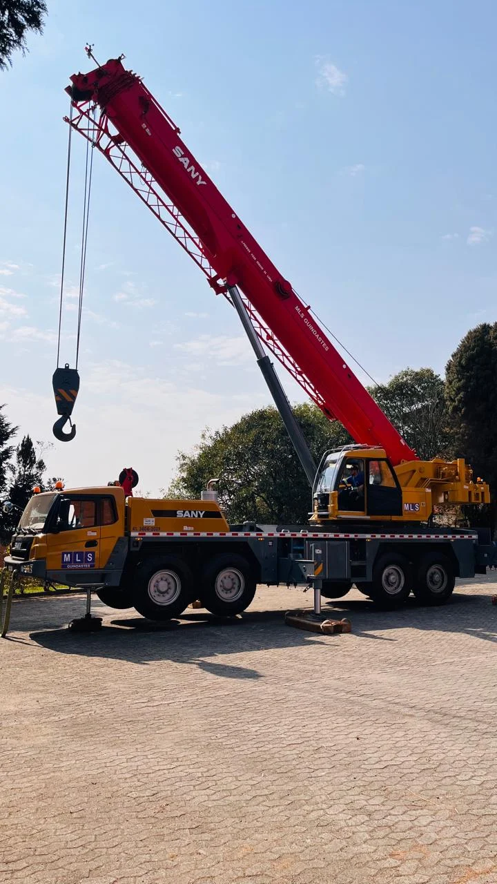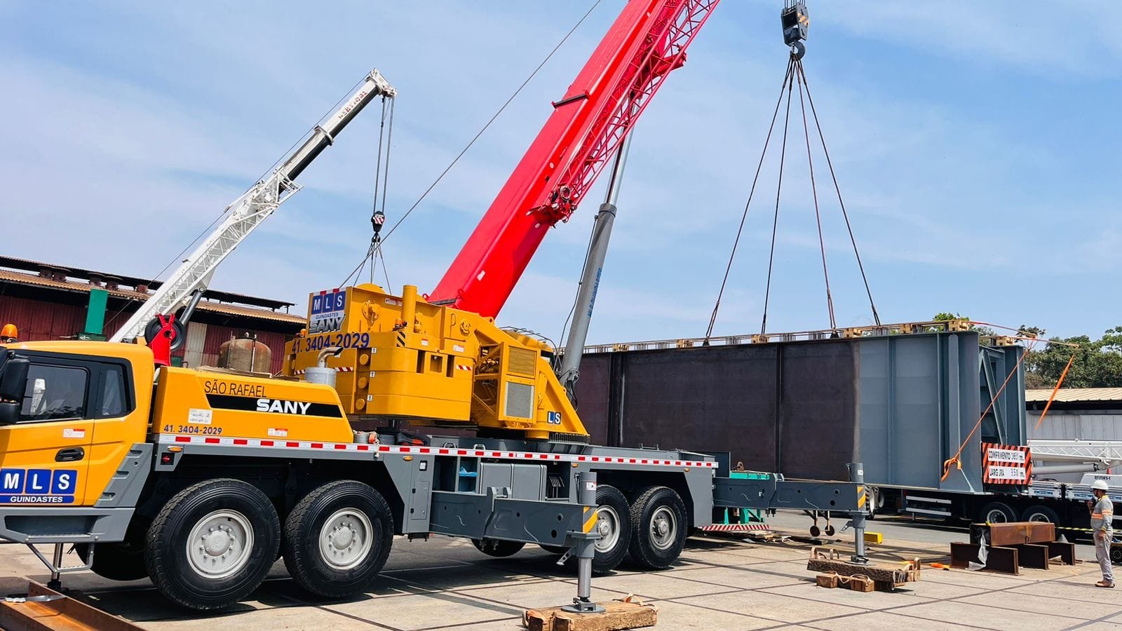 Serviço de locação de guindastes de diversas capacidades para movimentação de cargas pesadas em obras.