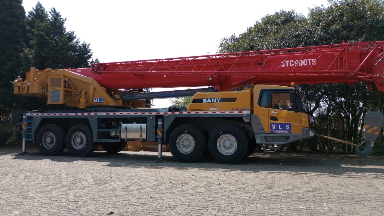 Capacidade máxima de içamento de 90 toneladas, lança de até 50 metros e altura de